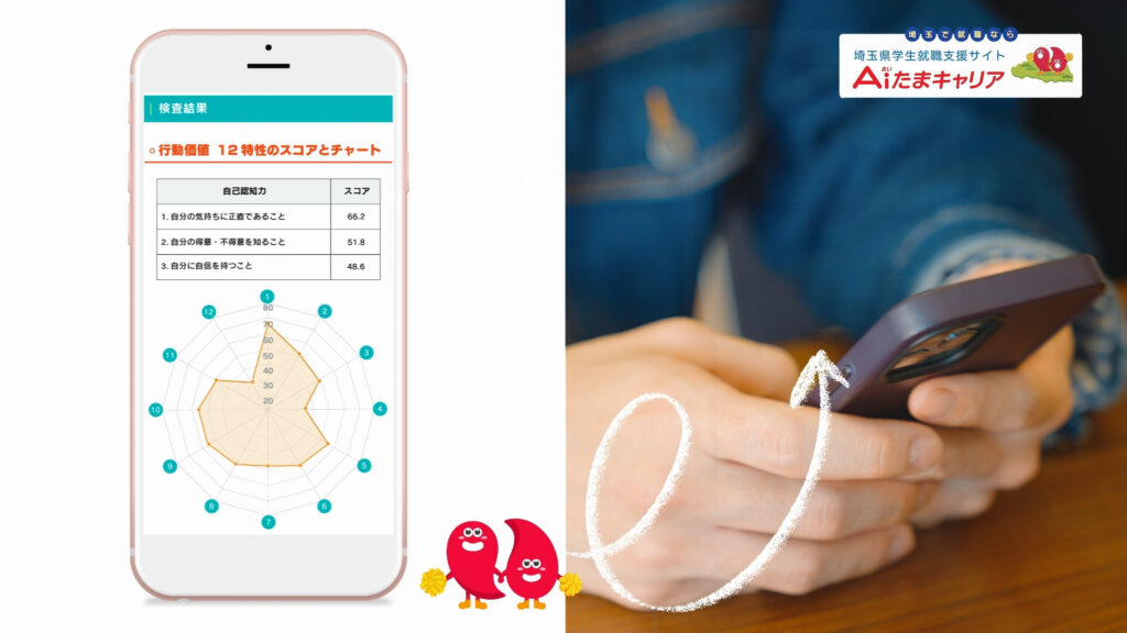 そして埼玉県の”働く若者を応援するマスコットキャラクター”である「チアたまちゃん」をモーショングラフィックで動かす演出も加えました。